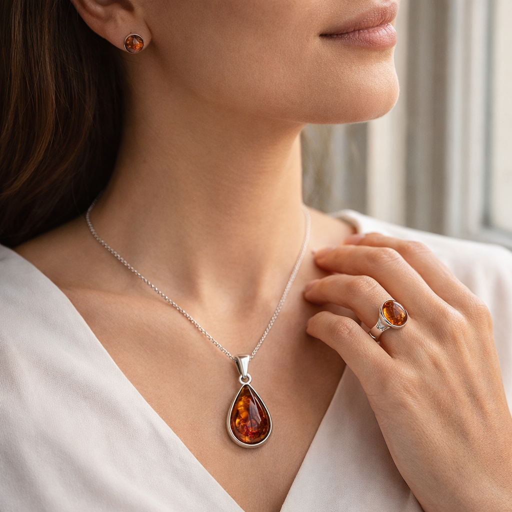 Another reason people love amber jewelry is comfort. Many amber earrings, pendants, and rings are lightweight and easy to wear, making them a practical choice for everyday style as well as dressier moments. When paired with sterling silver 925, amber gets a clean, elegant setting that highlights the stone without overwhelming it.