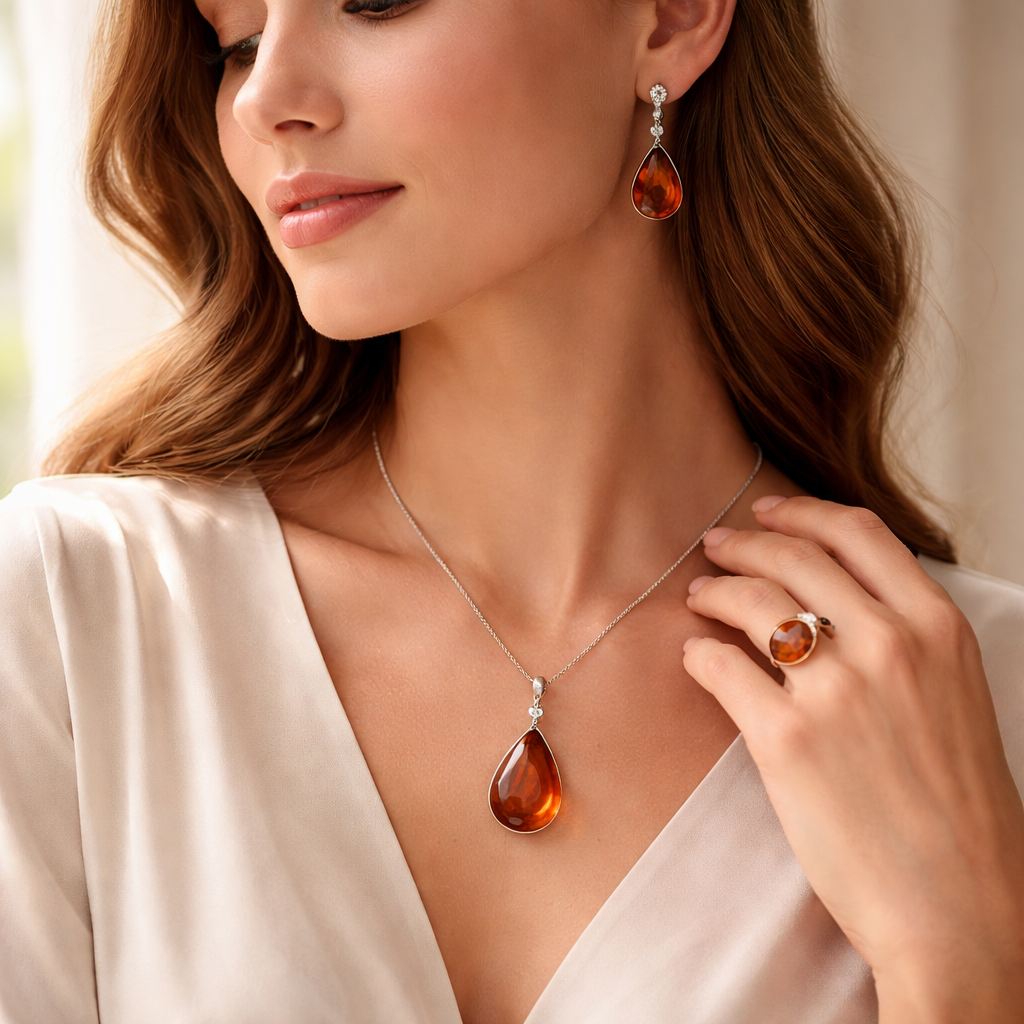 Fall may be the most natural season for amber jewelry. Cognac, cherry, and deep honey tones pair beautifully with sweaters, boots, and earthy colors. This is when many beginners start to appreciate warmer stones and slightly bolder statement pieces.