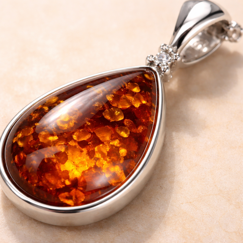 When paired with sterling silver 925, amber gets an even more polished finish. Silver frames the warm tones beautifully and adds a clean, classic look that works well for both everyday wear and gifts.
