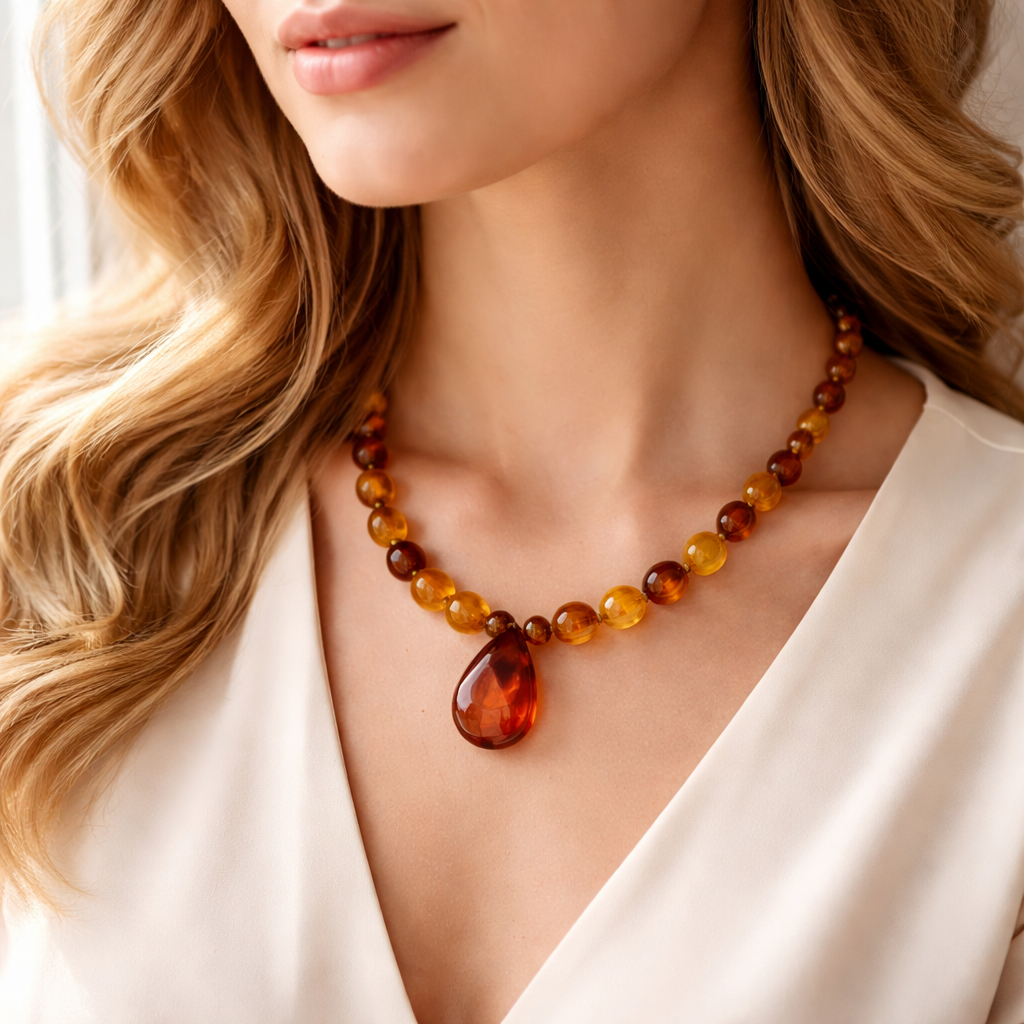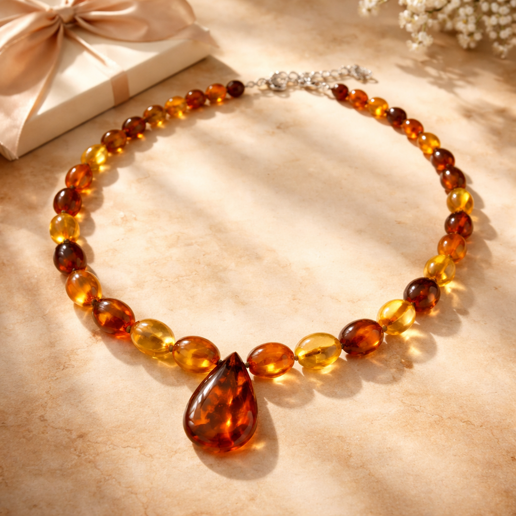 An amber necklace stands out because it blends natural beauty with wearable comfort. Unlike many gemstones, genuine amber feels light, warm, and easy to wear throughout the day, which is one reason first-time buyers often fall in love with it.