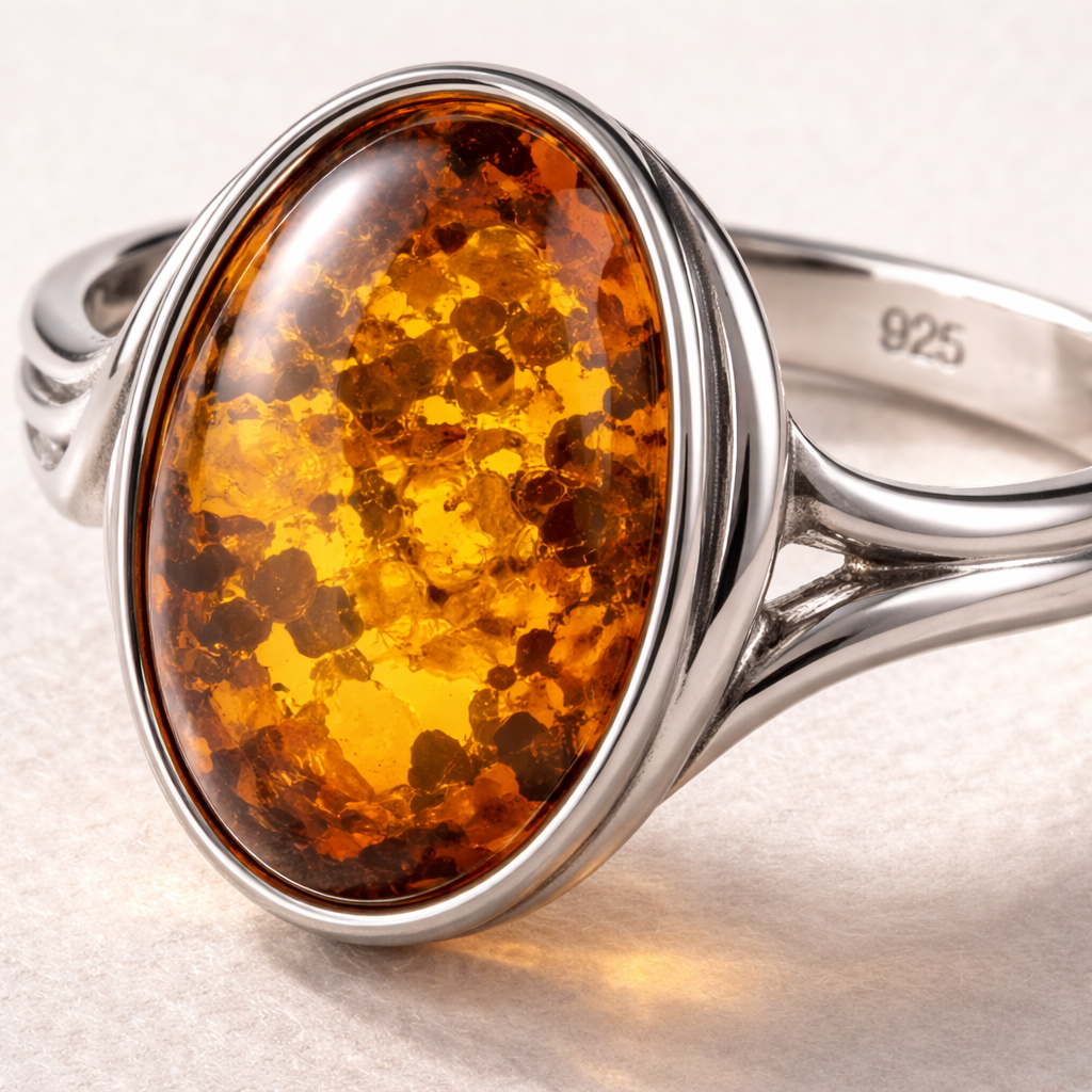 When relevant, sterling silver 925 is a favorite match for amber because it adds brightness without overpowering the stone. Silver works especially well for shoppers who want a ring that feels classic, giftable, and easy to pair with other jewelry.