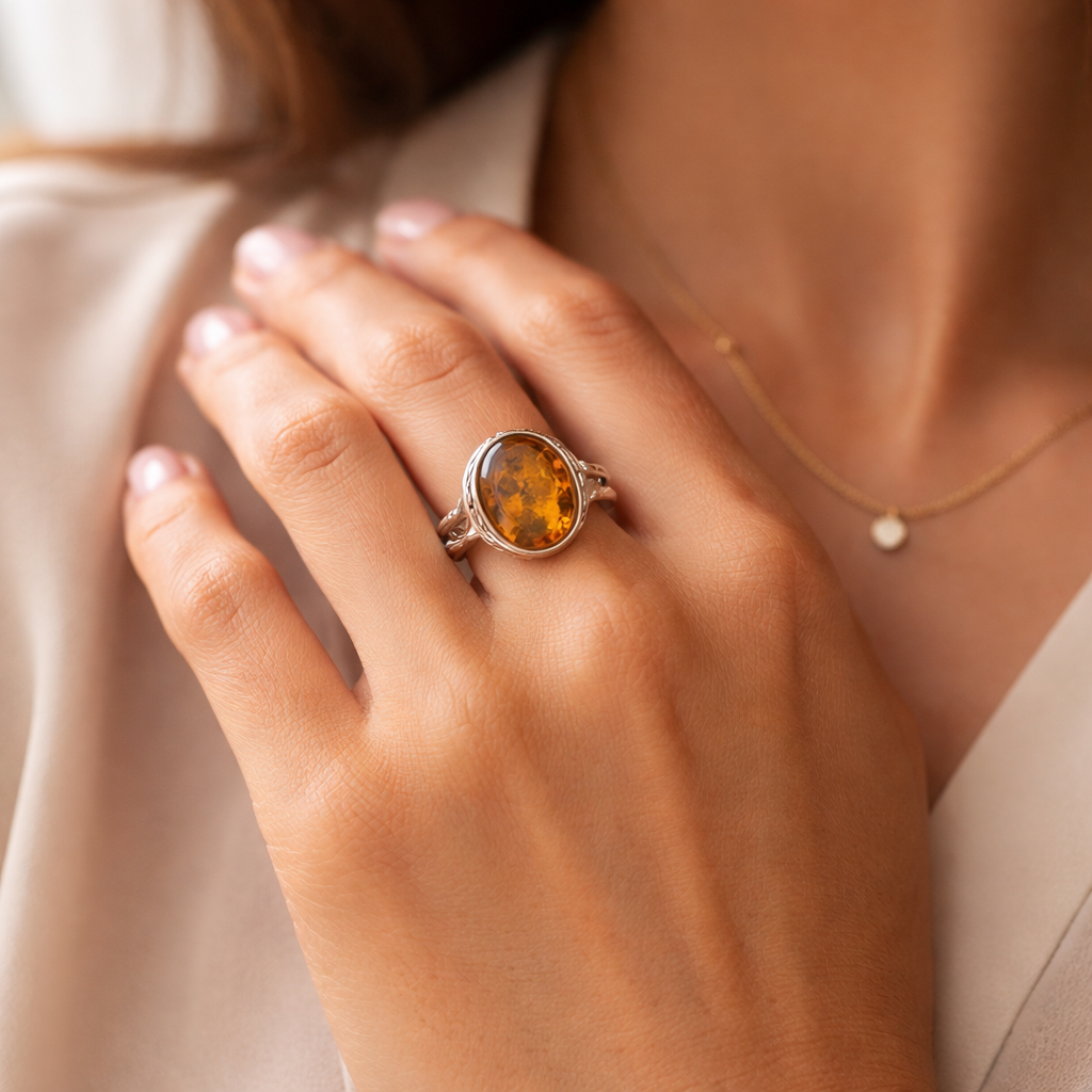 An amber ring stands out because it combines natural warmth with everyday versatility. Unlike trend pieces that come and go quickly, genuine amber has a classic look that still feels fresh each season. In cooler months, shoppers tend to gravitate toward deeper honey, cognac, and cherry tones. In spring and summer, lighter golden and green shades of Baltic amber often get more attention because they feel airy and bright.