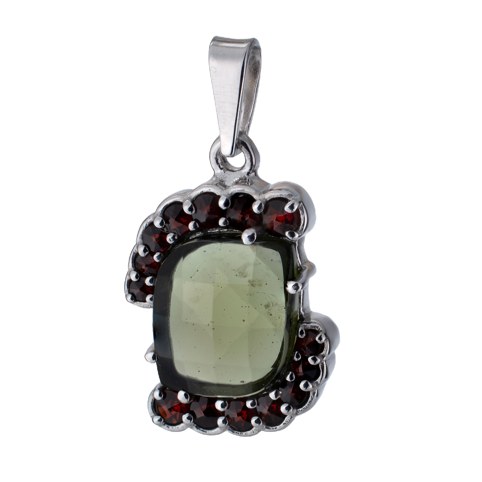 Bohemian Garnet And Moldavite Sterling Silver Pendant
