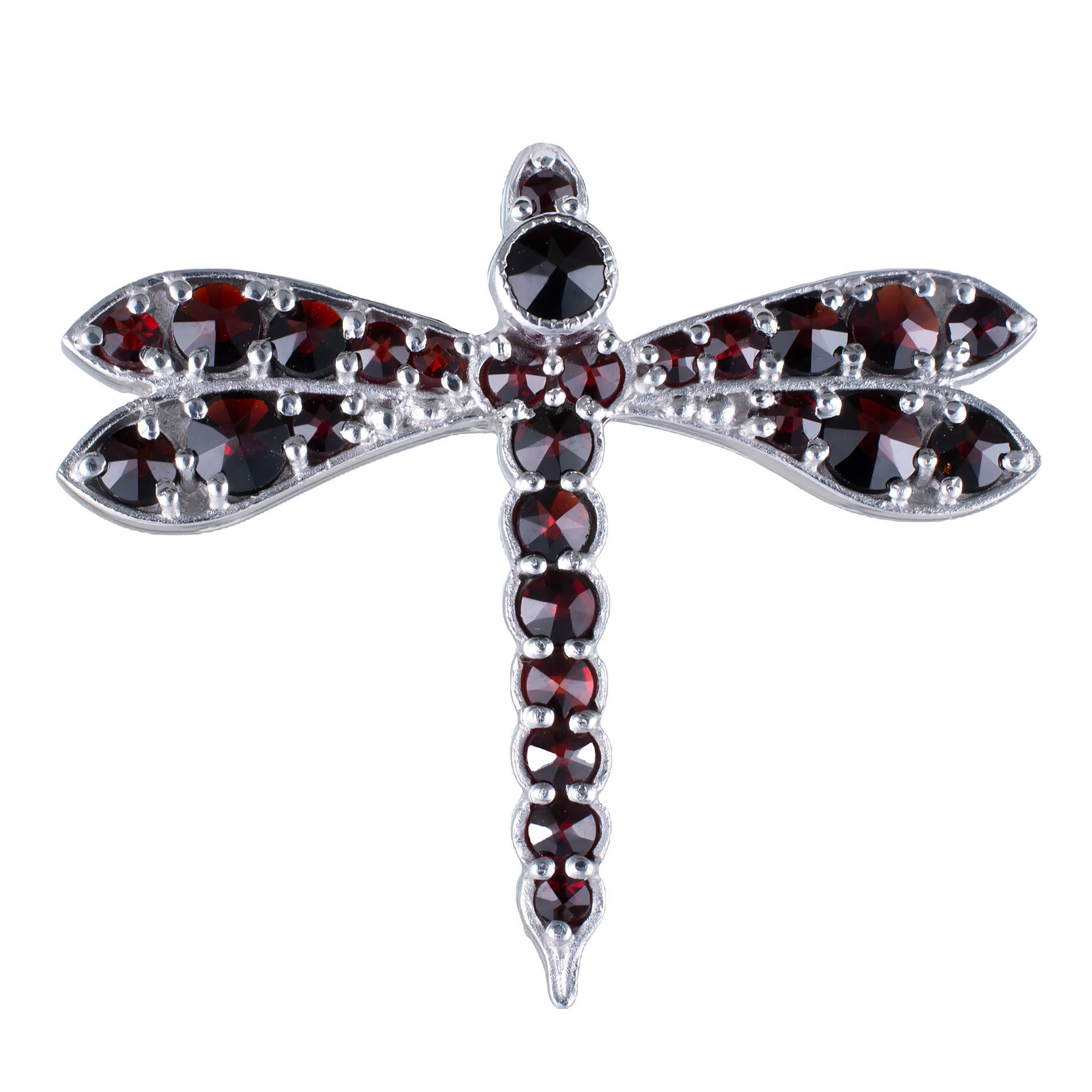 Bohemian Garnet Sterling Silver Dragonfly Brooch