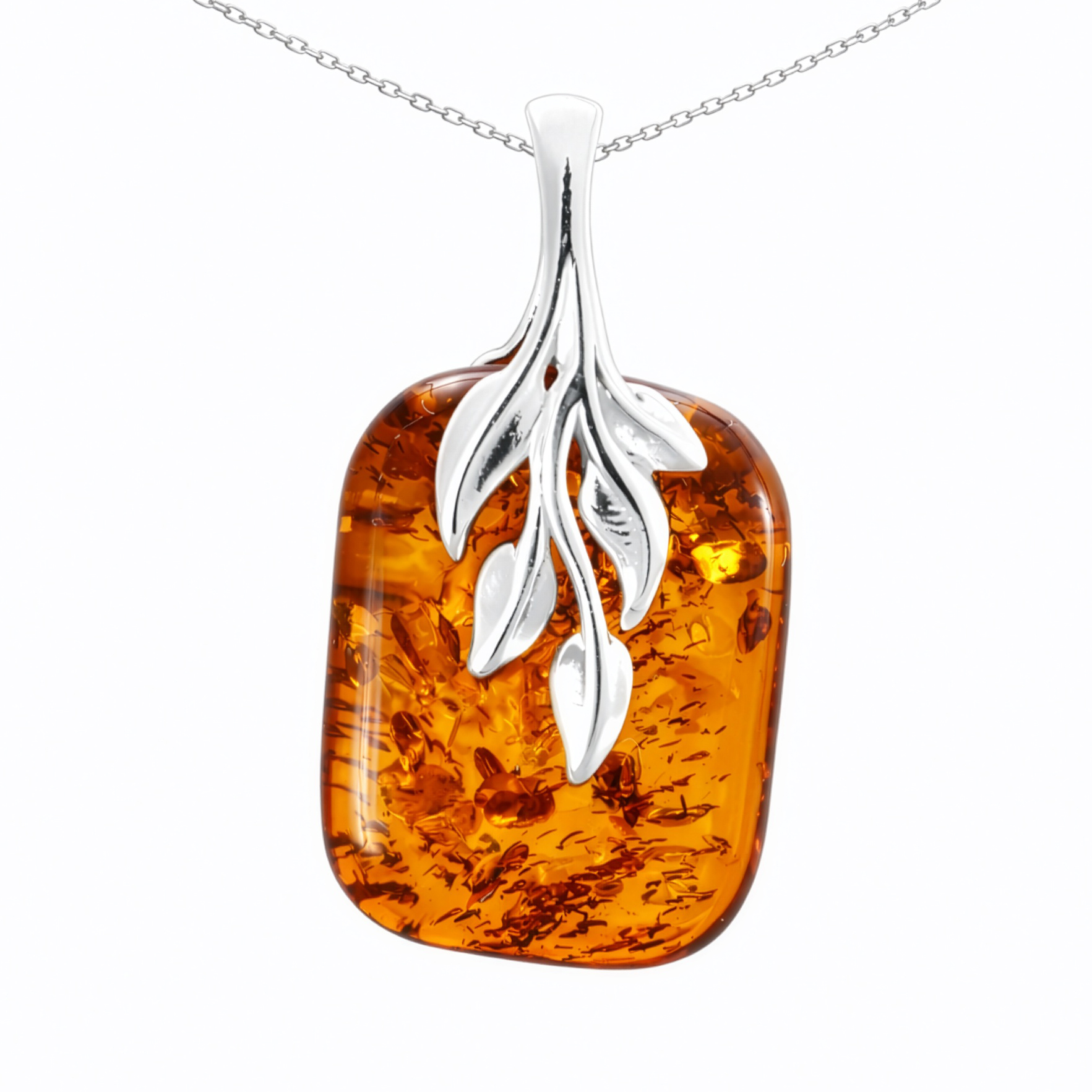 - Genuine Baltic Honey Amber Fern Pendant in 925 Sterling Silver – GIA Certified Rectangle Amber Necklace for Women