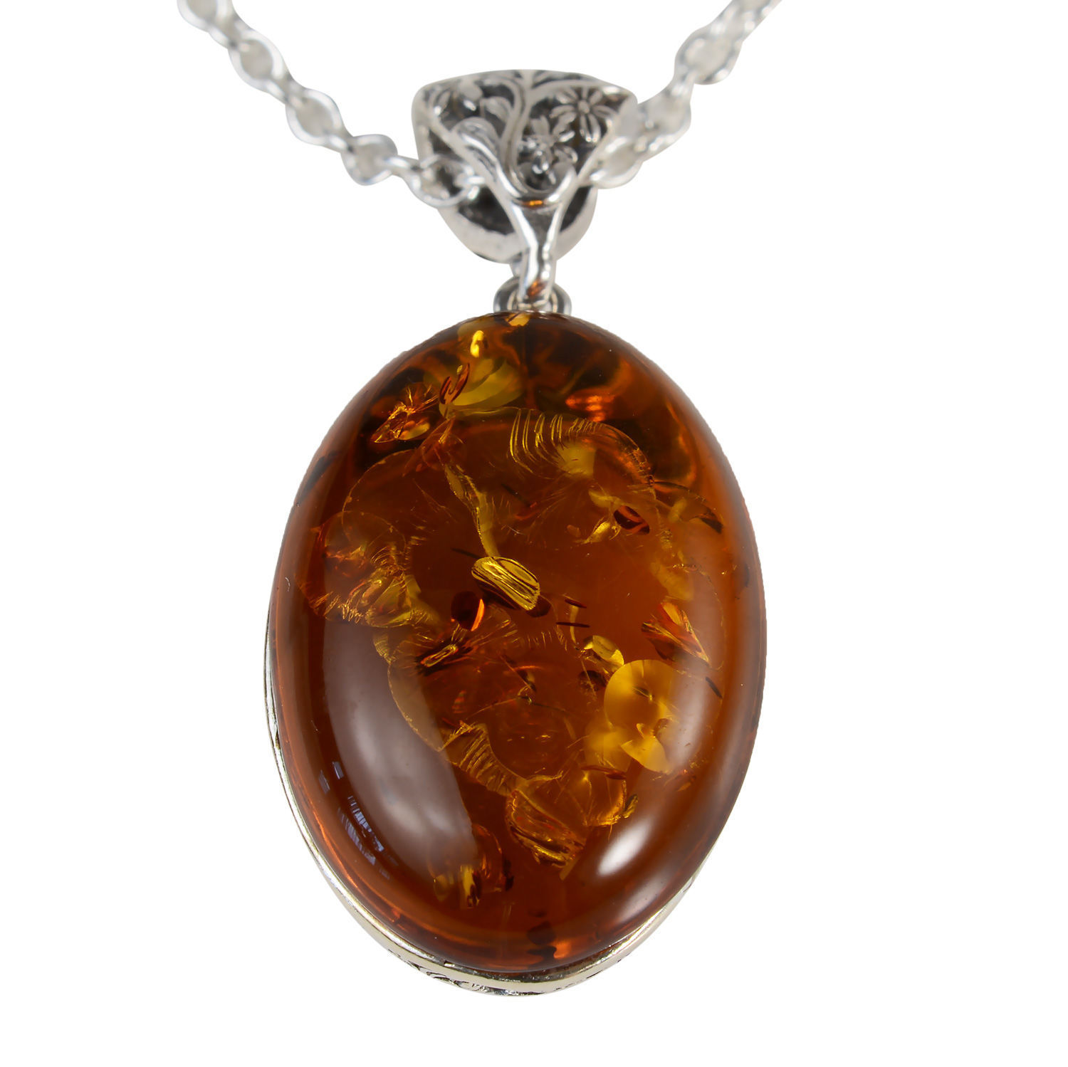 - Lois Natural Baltic Honey Amber Oval Pendant Necklace in 925 Sterling Silver – Genuine Baltic Amber Filigree Floral Pendant, 18” Chain, Authentic Gift for Women