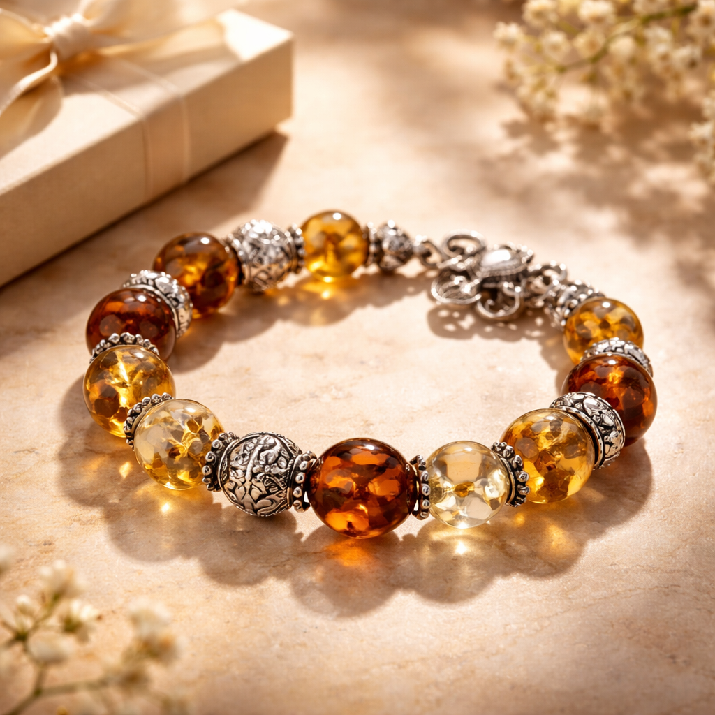 A well-styled amber bracelet stack does not have to be complicated. Focus on one beautiful focal piece, mix in texture with intention, and keep the overall look balanced and comfortable. Whether you are choosing something for yourself or searching for a gift for her, genuine amber brings warmth, craftsmanship, and everyday versatility to jewelry styling.