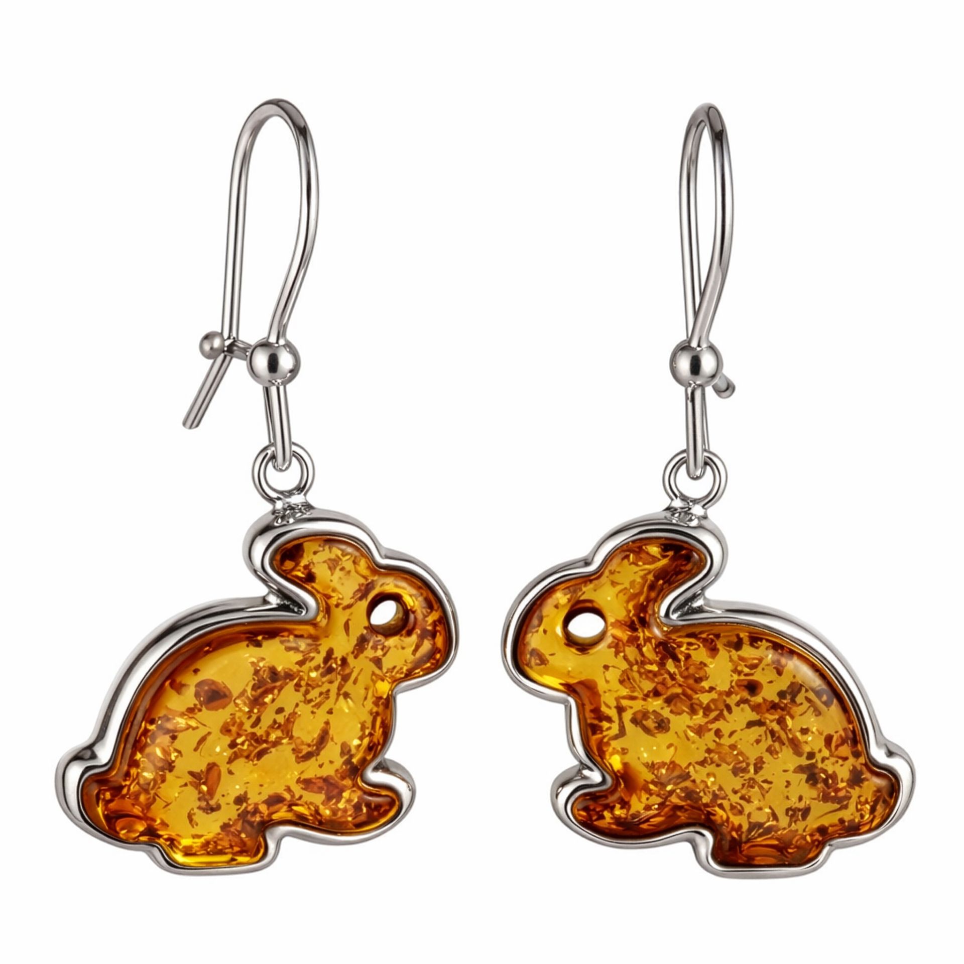 Sterling Silver and Baltic Amber Kidney Hook Honey Amber Bunny Earrings
