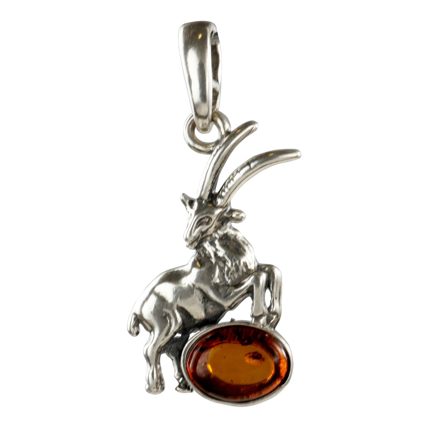 Sterling Silver and Baltic Amber Zodiac Sign Capricorn Pendant
