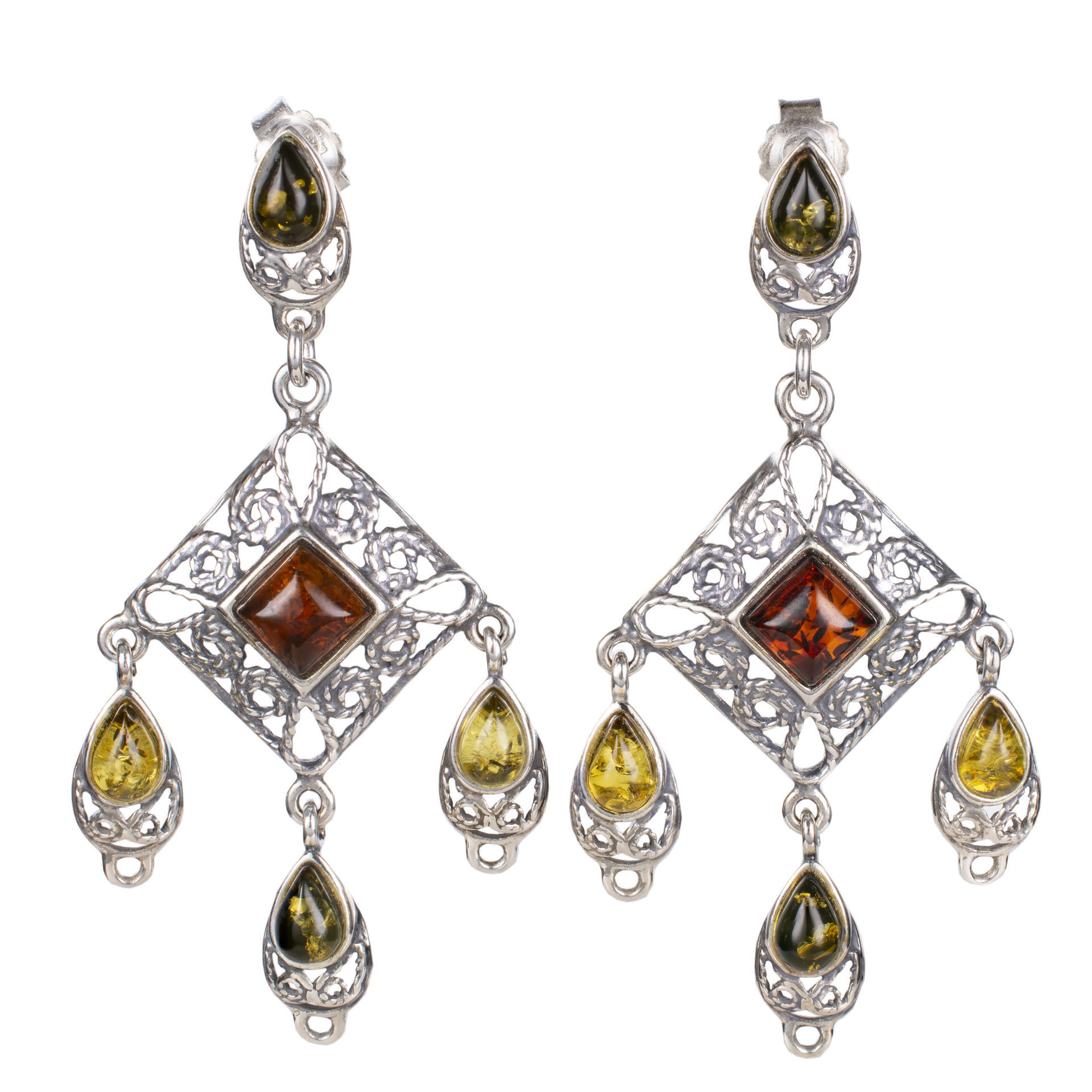 Sterling Silver and Baltic Multicolored Amber Earrings "Fay"