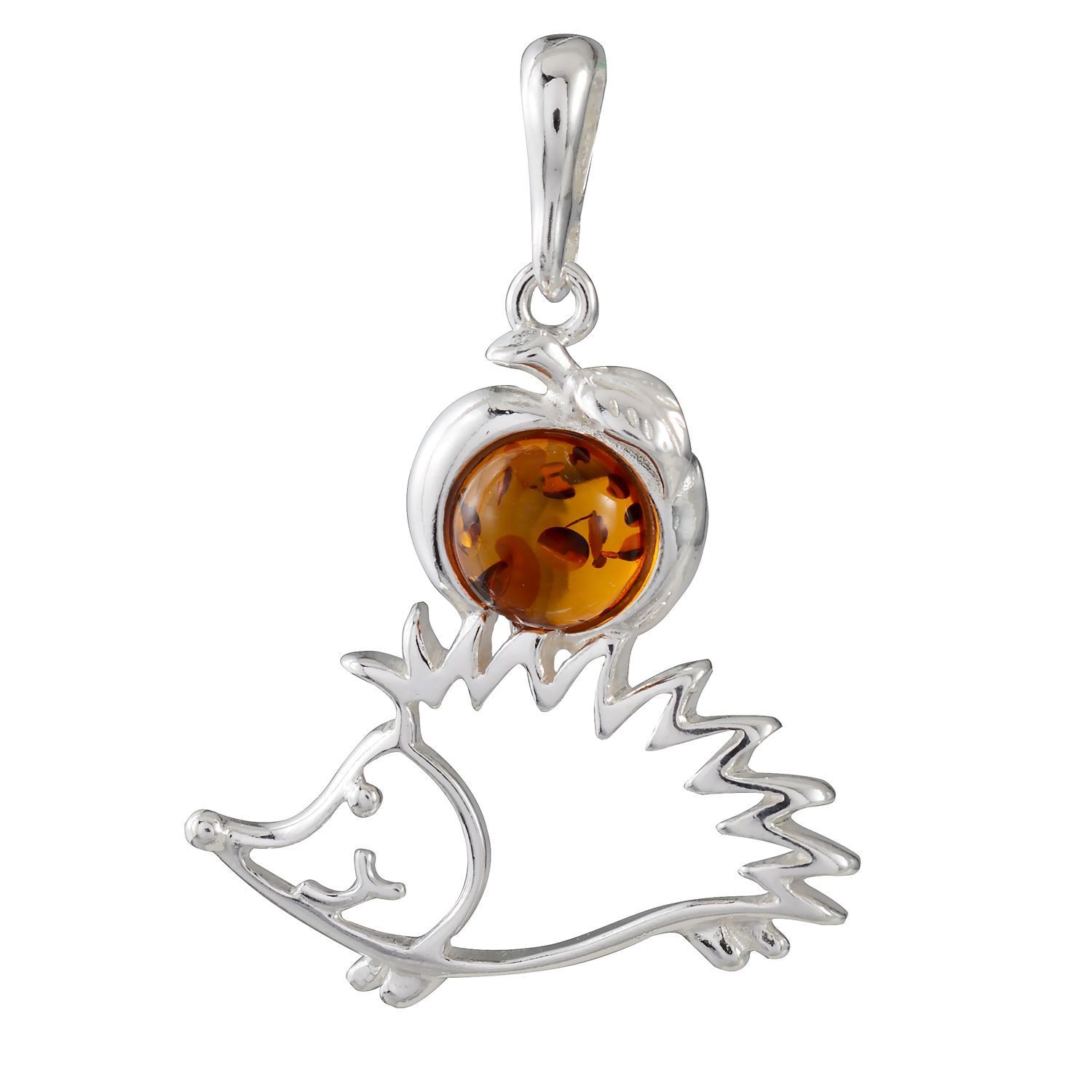 Sterling Silver and Baltic Honey Amber Hedgehog Pendant