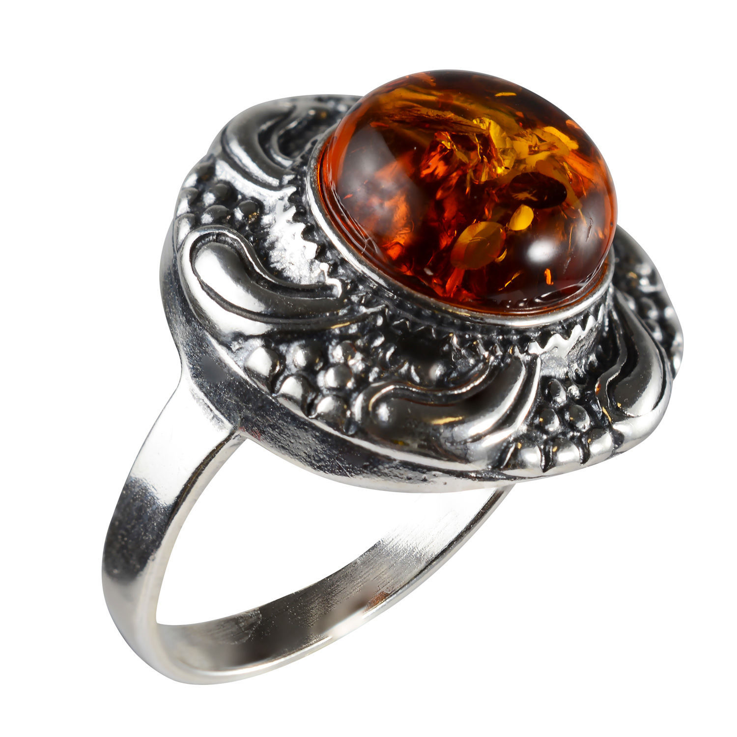 Introducing the sterling silver and Baltic honey amber round ring Inga! This statement ring is handcrafted from genuine Baltic amber and slightly oxidized 925 sterling silver. The round honey amber stone measures 0.38 inches. The ring weighs 4.05 grams.