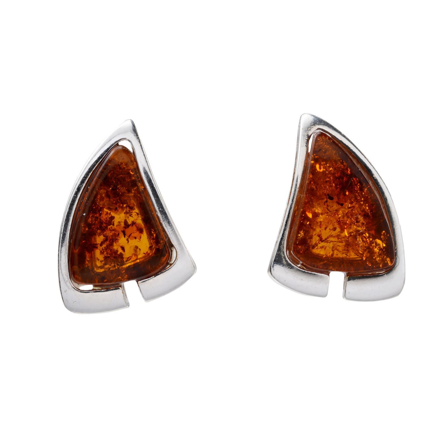 Our post back Hailee earrings are handmade with genuine Baltic amber and 925 sterling silver. The amber stone is irregular in shape and a beautiful honey color, set in silver and measuring 0.38"x0.2". The stud earrings have a total length of 0.49" and width of 0.3", and weigh 1.8 grams each. They fasten securely with post back closures
